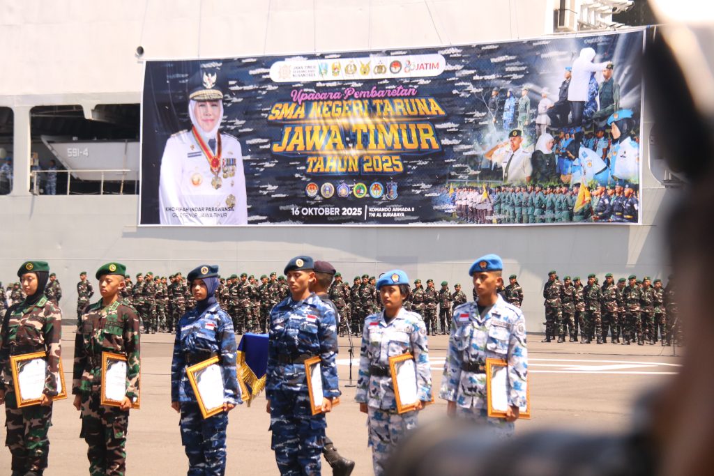 Sebanyak 270 taruna dan taruni SMAN 3 Taruna Angkasa Jawa Timur secara resmi menjalani Upacara Pembaretan bersama 1.346 siswa SMAN Taruna se-Jawa Timur pada Kamis, 16 Oktober 2025, bertempat di Dermaga Madura, Komando Armada II TNI Angkatan Laut Surabaya. Upacara yang berlangsung khidmat dan penuh nilai kedisiplinan ini dipimpin langsung oleh Gubernur Jawa Timur, Khofifah Indar Parawansa, didampingi jajaran TNI AL.